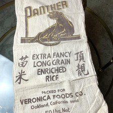 Vintage 50 lb PANTHER Fancy Rice Sack Oakland Calif Veronica Foods 94821