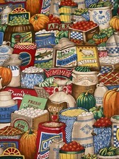 Colorful Country Food Farm Set 4 Cloth Dinner Napkins 17” Cottage Chic Vintage