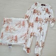 Milkbarn pink elephant sleeper and burp cloth set 3 6 months