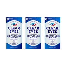 3 Packs Clear Eyes Contact Lens Relief Eye Drops, 0.5 fl oz EXP 02/2026