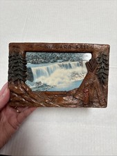 Vtg Niagara Falss Print Glass & Wood Picture Frame Tabletop souvenir Germany- G5